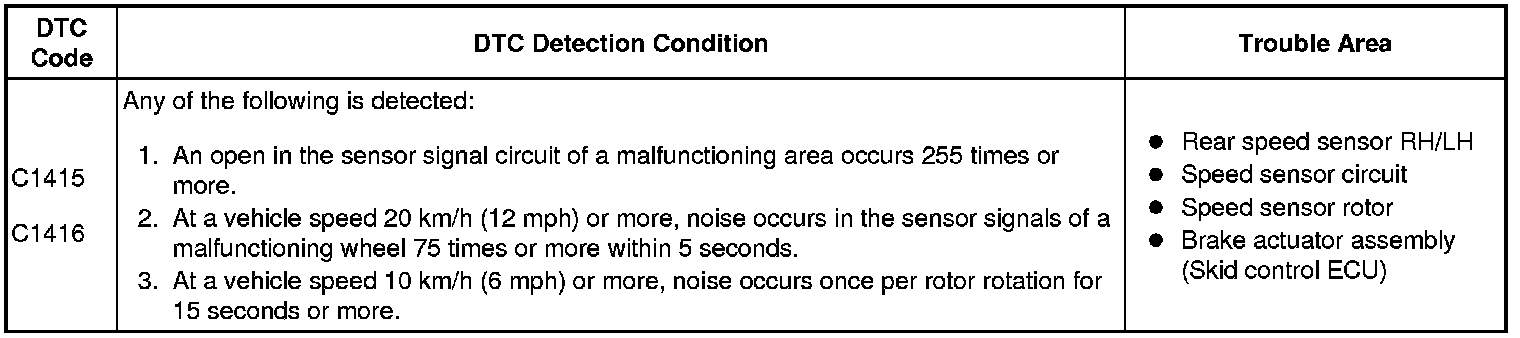 DTC C1416 - Rear Speed Sensor LH Output Malfunction