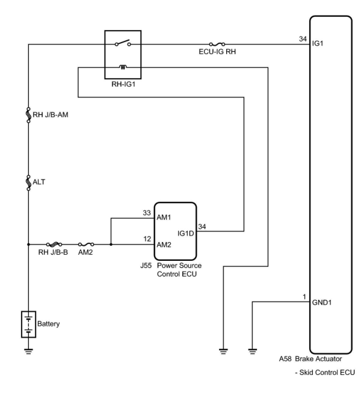 3. INSPECT SKID CONTROL ECU (IG1 TERMINAL)