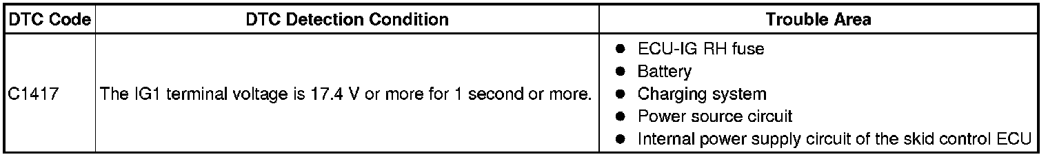 BRAKE CONTROL: VEHICLE STABILITY CONTROL SYSTEM: C1417: High Power Supply Voltage Malfunction