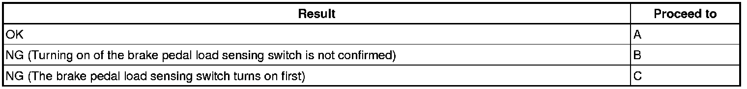 First the stop light switch should turn ON, and then the brake pedal load sensing switch should turn ON.