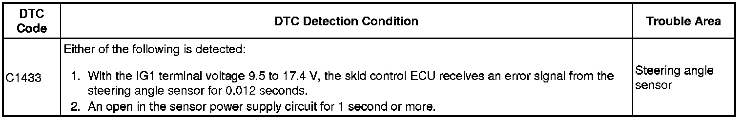 DTC C1433 - Steering Angle Sensor Internal Circuit