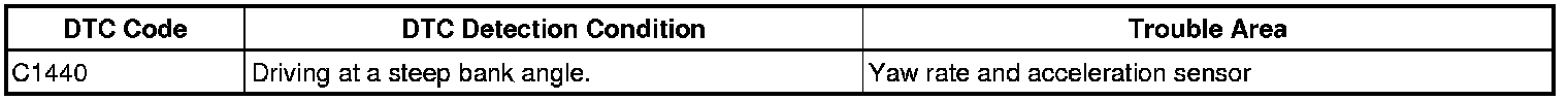 DTC C1440 and the yaw rate and acceleration sensor DTC are stored when the skid control ECU determines that the vehicle is being driven at a steep bank angle and either of the following conditions is present: