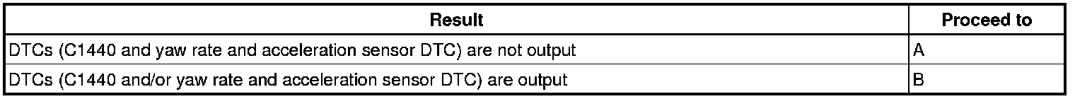 Drive the vehicle straight on a level road during the road test, and check if DTC 1440 and the yaw rate and acceleration sensor DTC are output again.