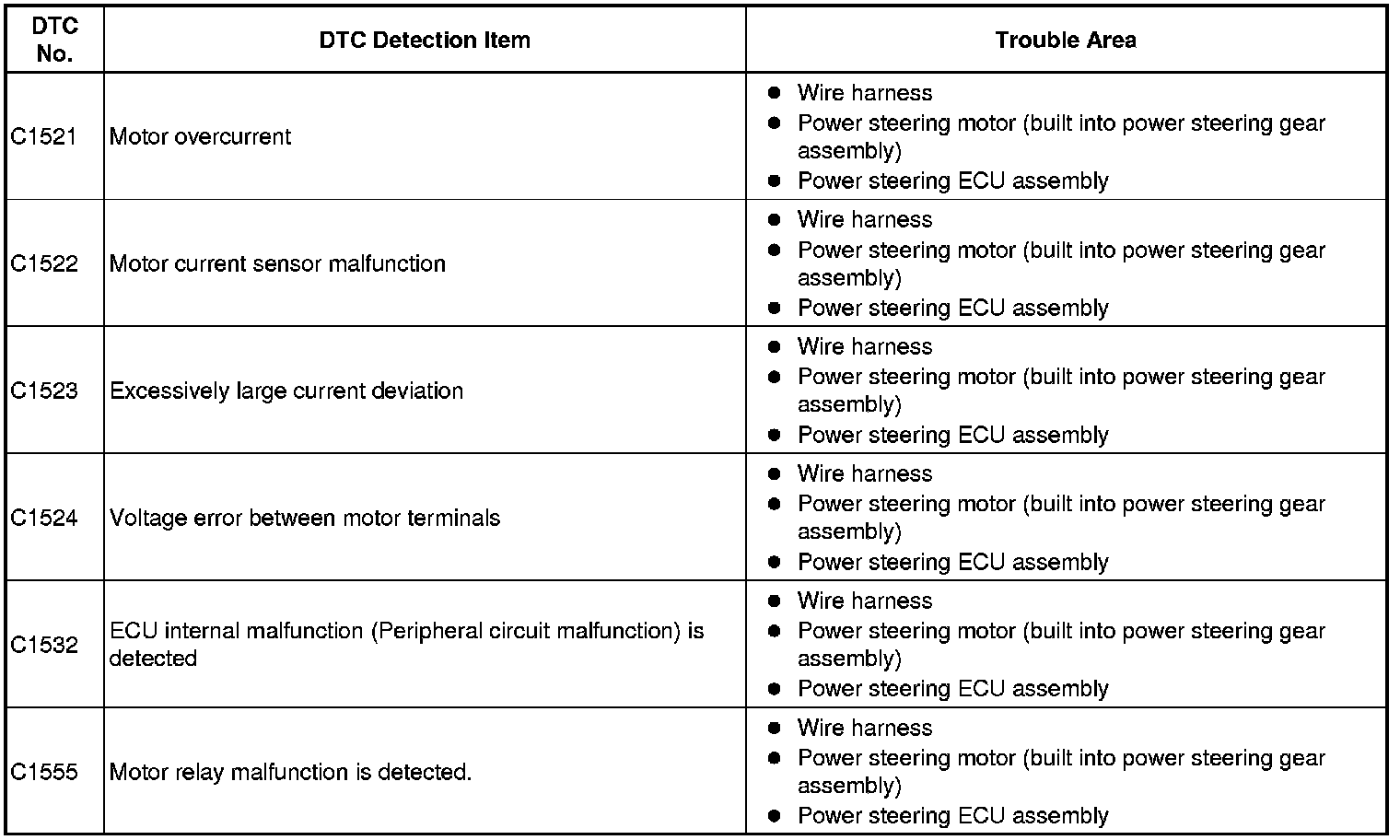 POWER STEERING: ELECTRONIC POWER STEERING SYSTEM: C1521: Motor Circuit Malfunction