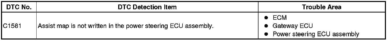 The power steering ECU assembly outputs this DTC when it determines that the assist map is not written in the ECU.