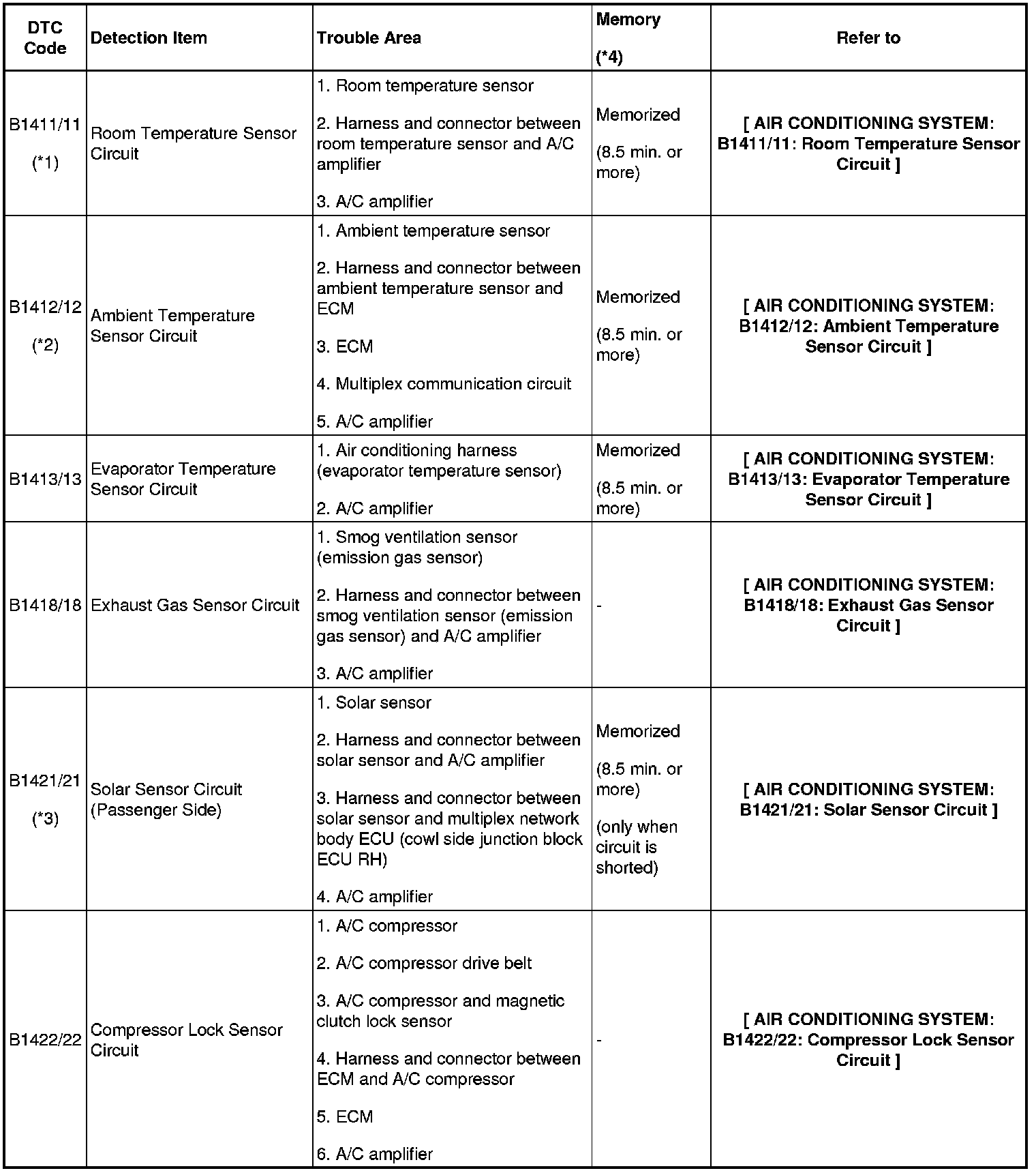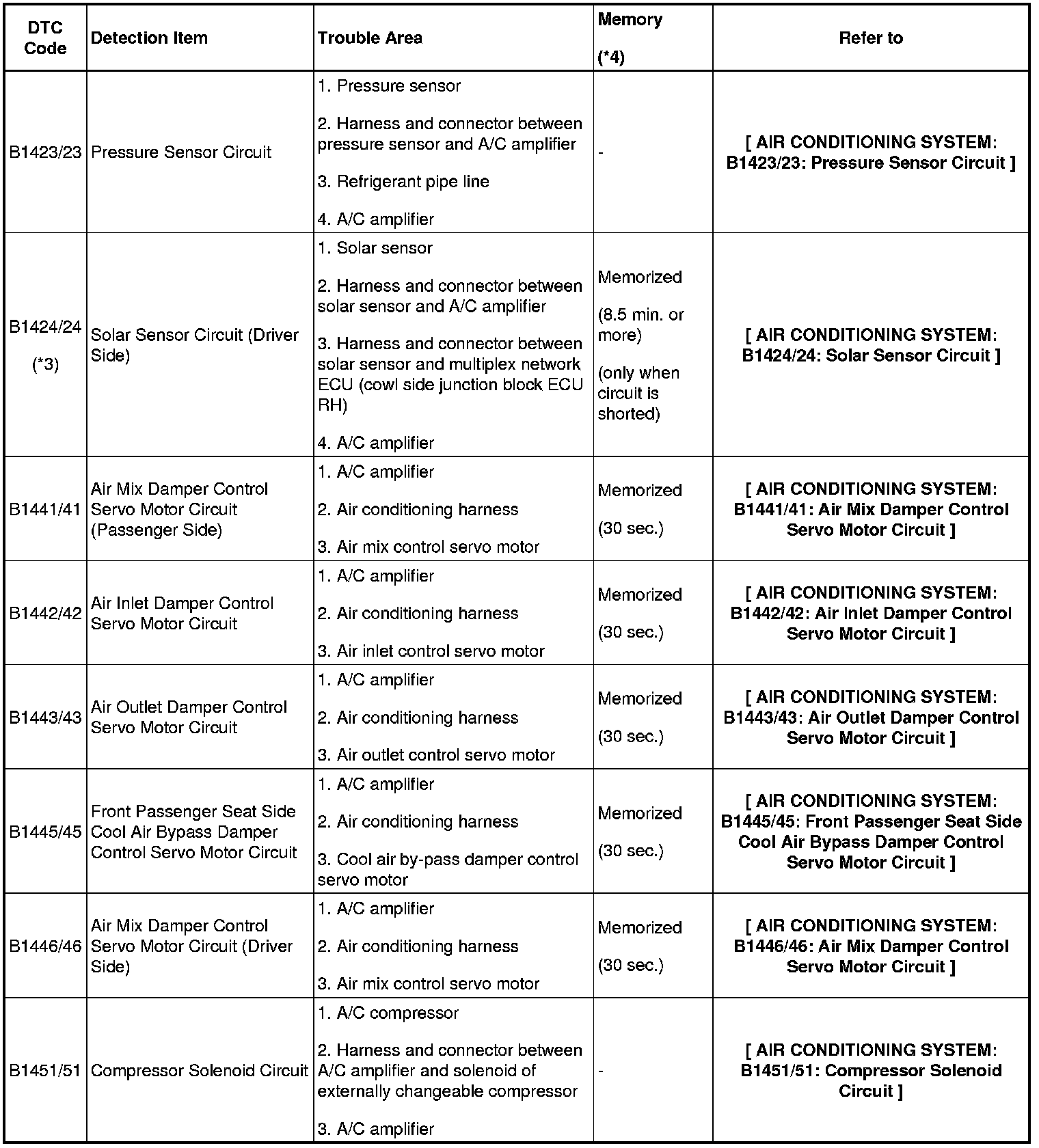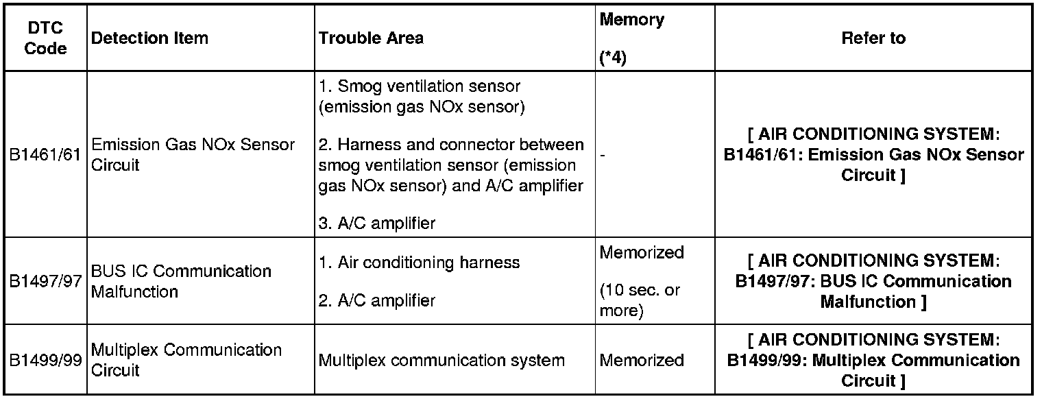 - *4: The A/C amplifier memorizes the DTC of the respective malfunction if it has occurred for the period of time indicated in the brackets.