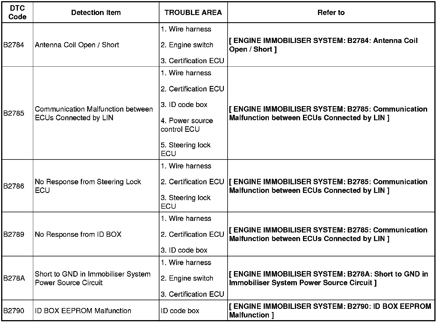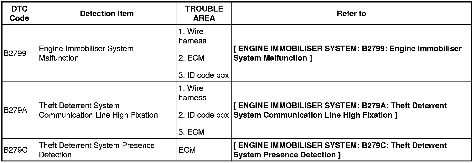 ENGINE IMMOBILIZER: ENGINE IMMOBILIZER SYSTEM: DIAGNOSTIC TROUBLE CODE CHART