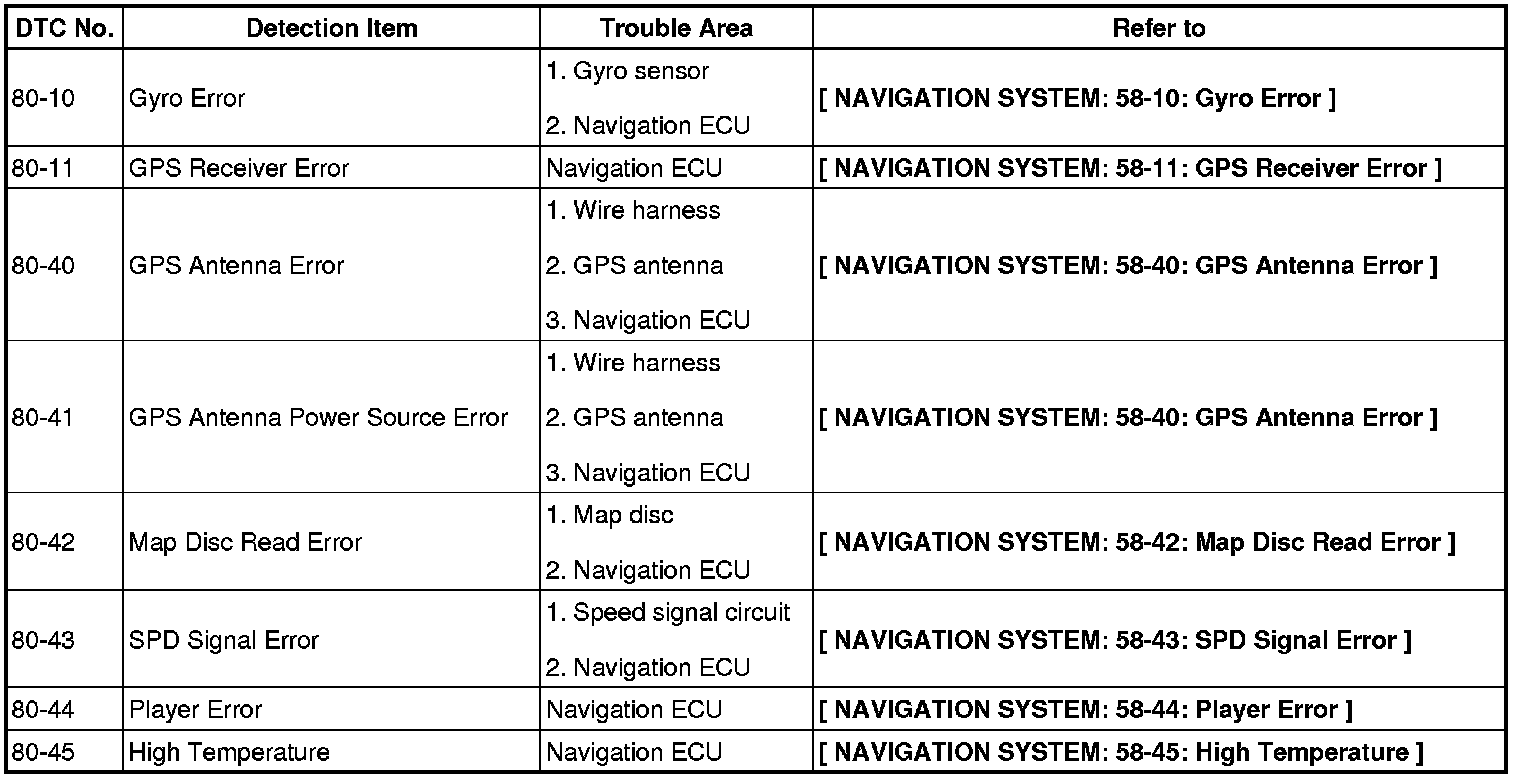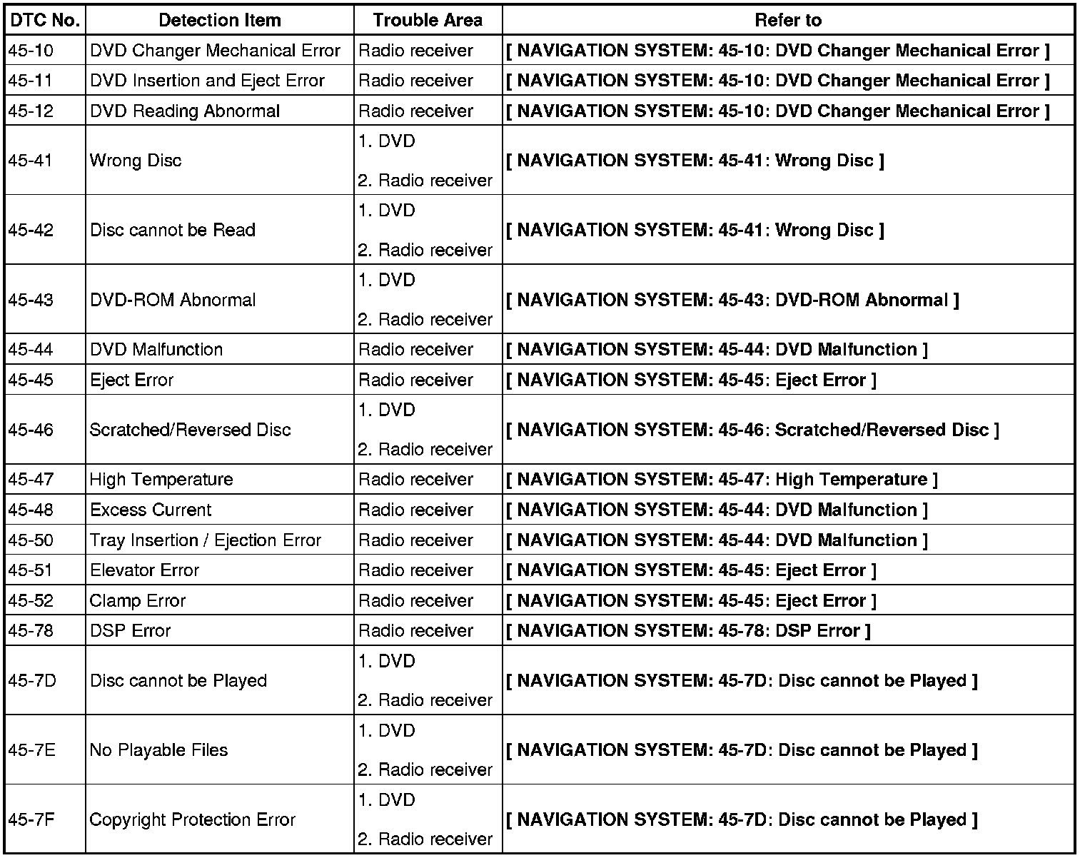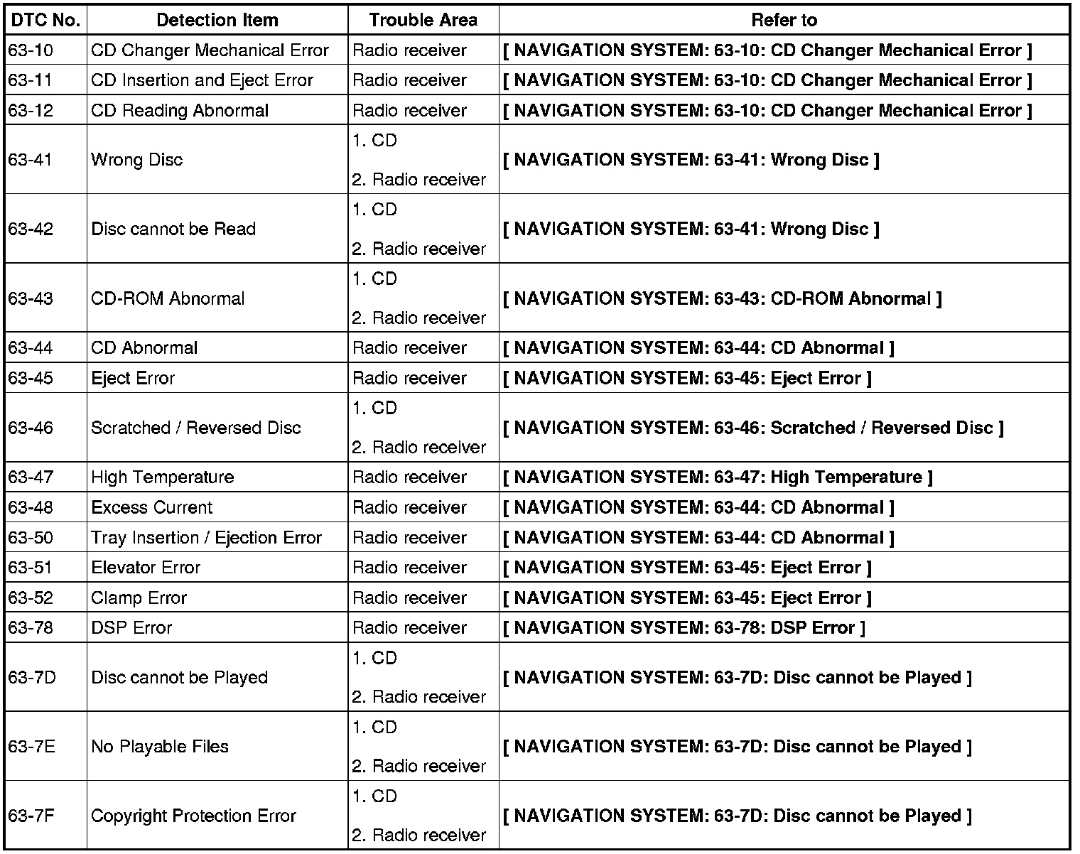 NAVIGATION: NAVIGATION SYSTEM: DIAGNOSTIC TROUBLE CODE CHART