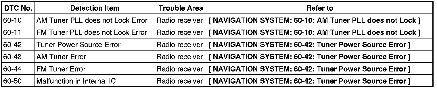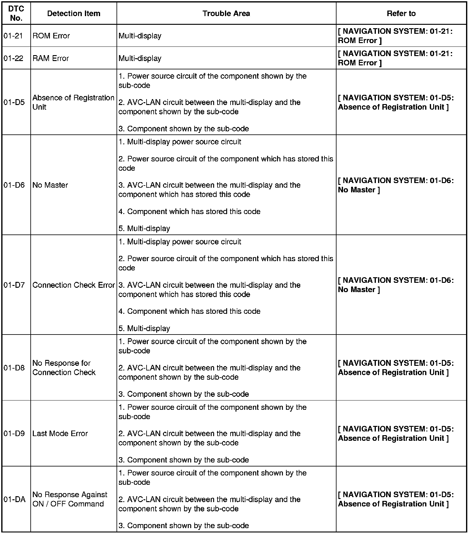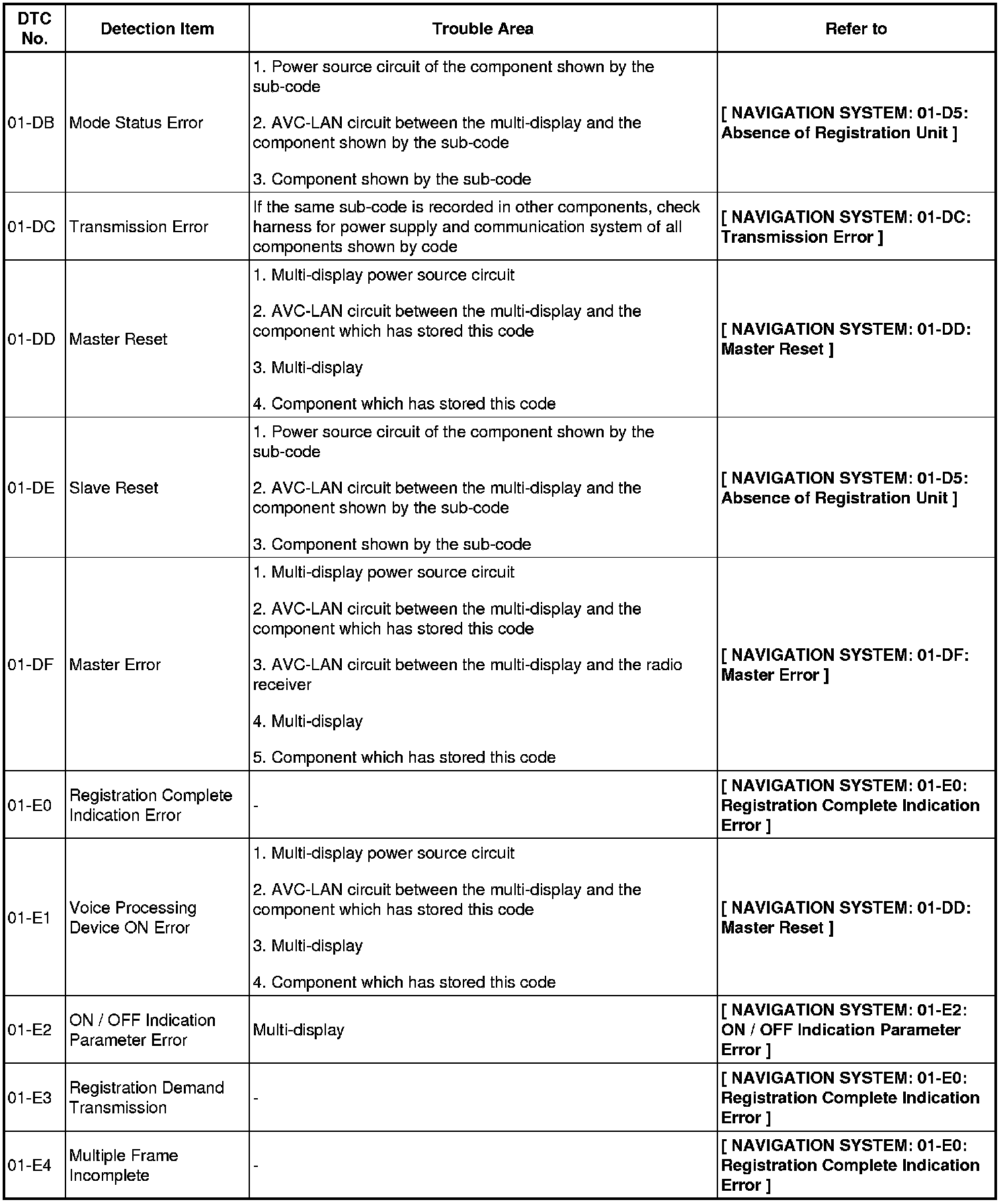 NAVIGATION: NAVIGATION SYSTEM: DIAGNOSTIC TROUBLE CODE CHART