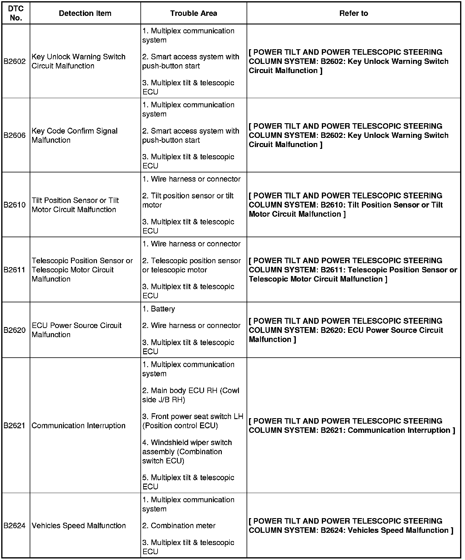 STEERING COLUMN: POWER TILT AND POWER TELESCOPIC STEERING COLUMN SYSTEM: DIAGNOSTIC TROUBLE CODE CHART