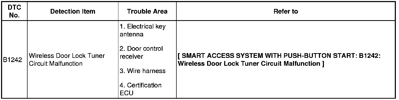 DOOR LOCK: SMART ACCESS SYSTEM WITH PUSH-BUTTON START: DIAGNOSTIC TROUBLE CODE CHART