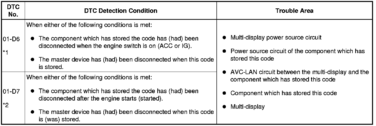 (2) Check for an open or short in the AVC-LAN circuit between the multi-display and the component which has stored this code.