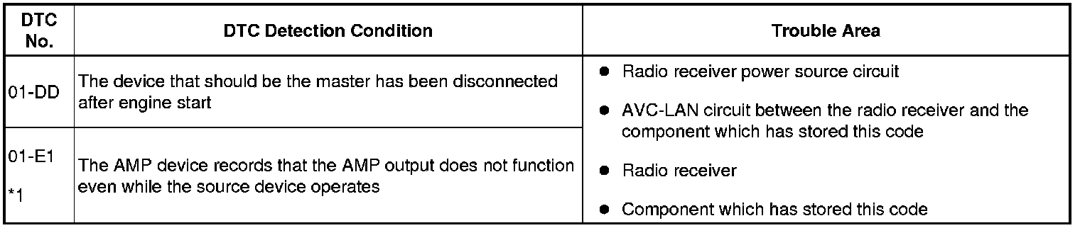 (2) Check for an open or short in the AVC-LAN circuit between the radio receiver and the component which has stored this code.
