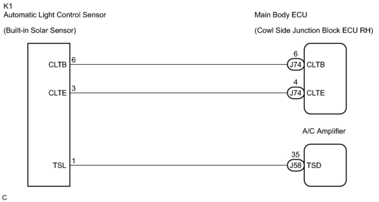 3. CHECK WIRE HARNESS (SOLAR SENSOR - MAIN BODY ECU RH)