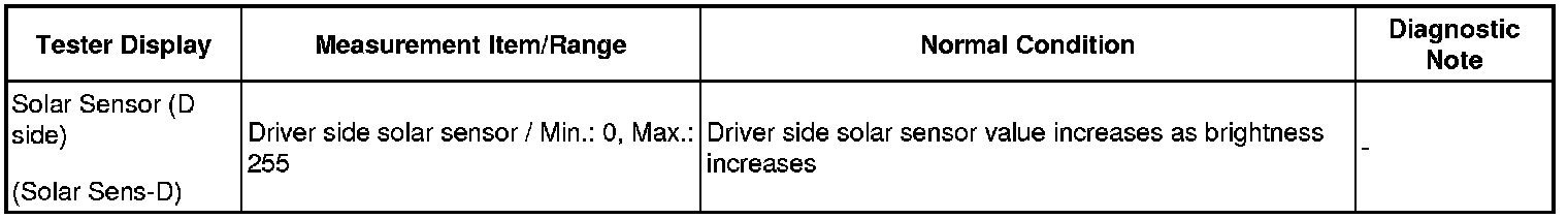 - If the check is performed in a dark place, DTC B1421/21 or B1424/24 (solar sensor circuit abnormal) may be output.
