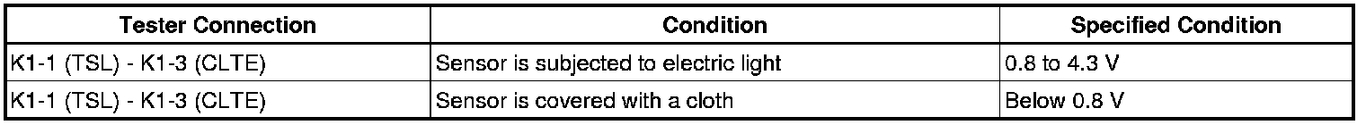 - The connection procedure for using a digital tester such as a TOYOTA electrical tester is shown above. When using an analog tester, connect the negative (-) lead to terminal 2 and positive (+) lead to terminal 1 of the solar sensor.