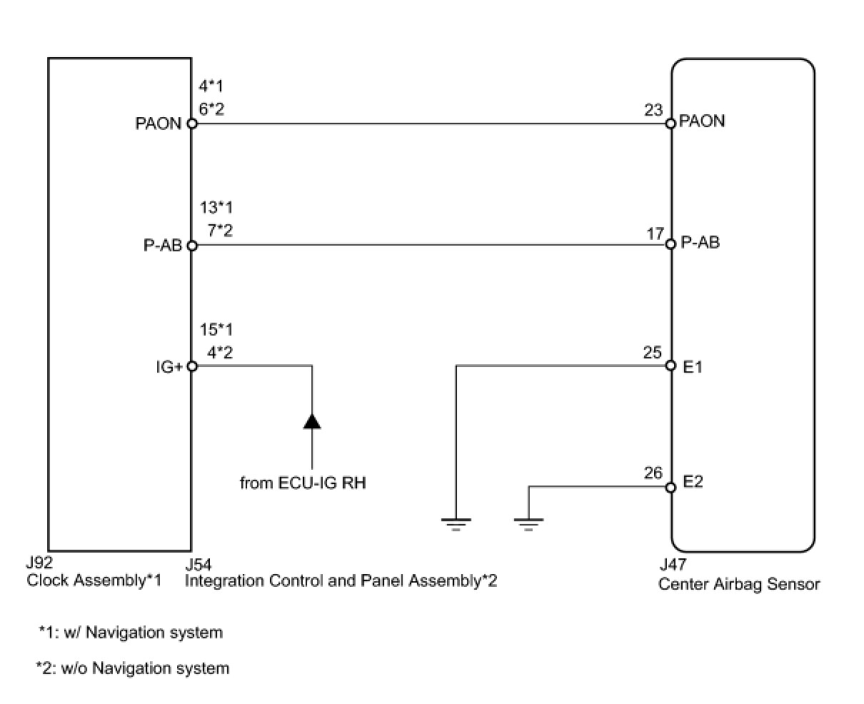 (2) Check that the connectors (on the center airbag sensor assembly side and integration control and panel assembly side) are not damaged.