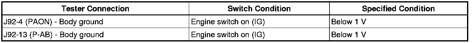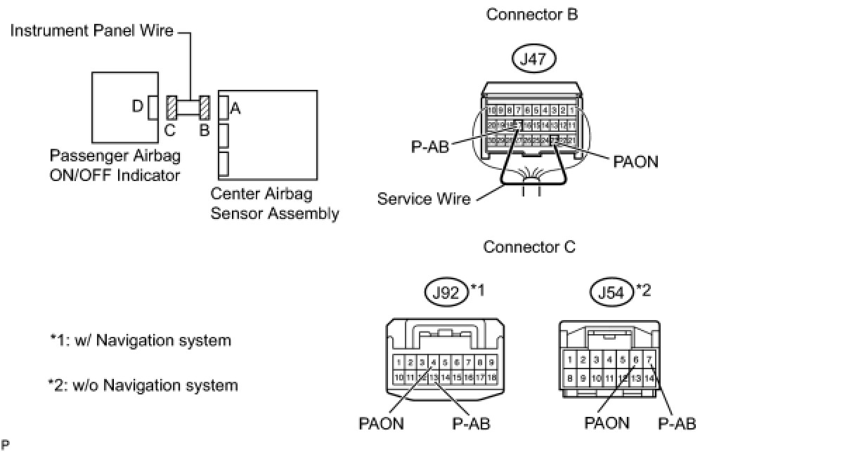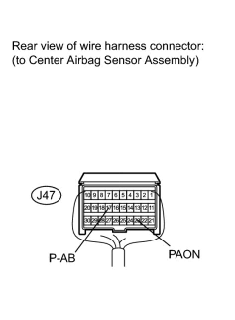 (e) Using a service wire, connect terminals 23 (PAON) and 17 (P-AB) of connector B.