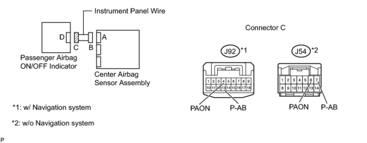 The passenger airbag ON/OFF indicator circuit consists of the center airbag sensor assembly and the passenger airbag ON/OFF indicator.