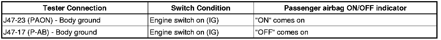 (b) Check the passenger airbag ON/OFF indicator operation.