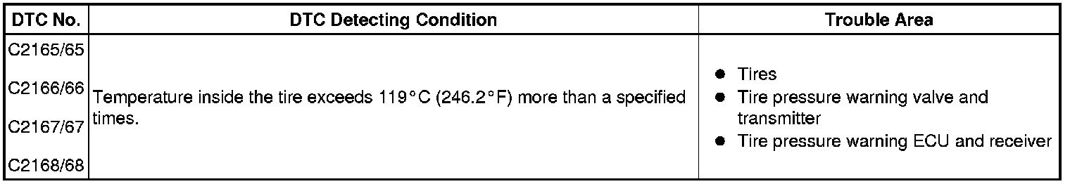 TIRE AND WHEEL: TIRE PRESSURE WARNING SYSTEM: C2165/65: Abnormal Temperature Inside ID1 Tire