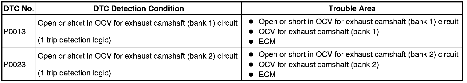 - If DTC P0013 is displayed, check the bank 1 VVT system for exhaust camshaft circuit.
