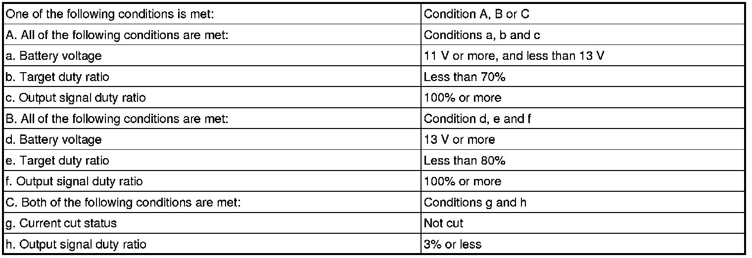 After the ECM sends the target duty-cycle signal to the OCV, the ECM monitors the OCV current to establish an actual duty-cycle. The ECM determines the existence of a malfunction and sets the DTC when the actual duty-cycle ratio varies from the target duty-cycle ratio.