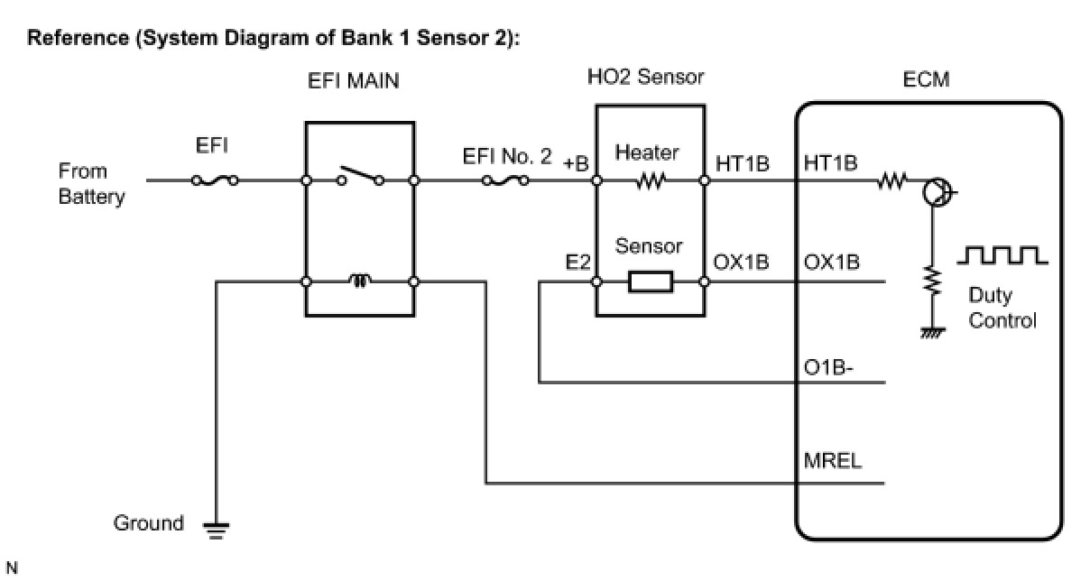 (a) Check the harness and connector between the HO2 sensor and EFI No. 2 fuse.