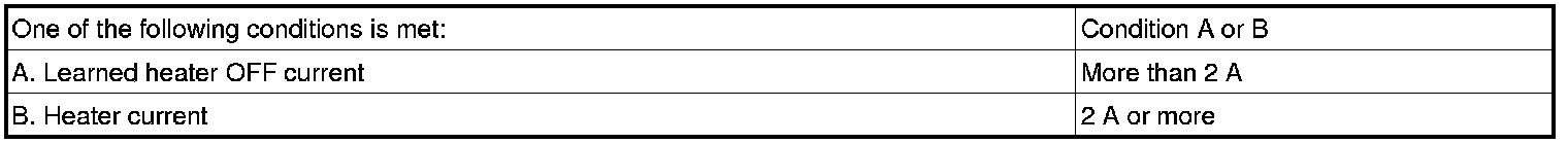 - After the accumulated heater ON time exceeds 100 seconds, the ECM calculates the heater resistance using the battery voltage and the current applied to the heater. If the resistance is above the threshold value, the ECM will determine that there is a malfunction in the HO2S heater and set DTC P0141 and P0161.