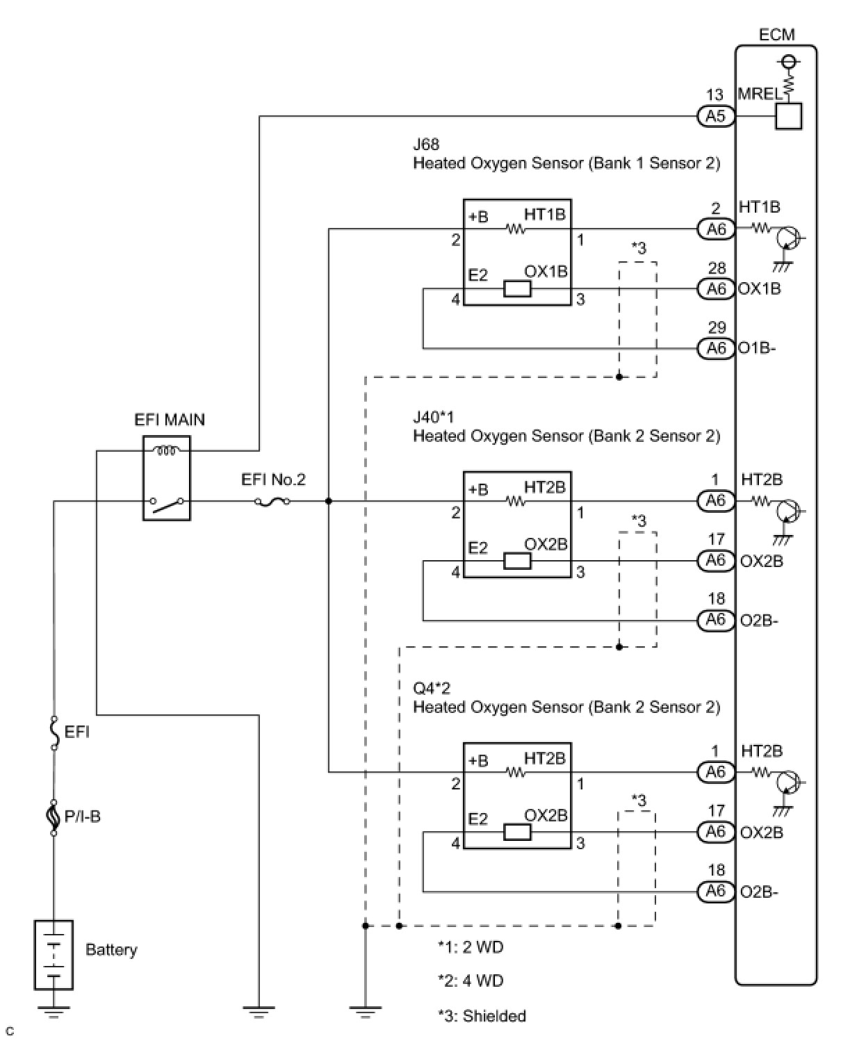 - The HO2 sensor heater circuit uses a relay on the B+ side of the circuit.