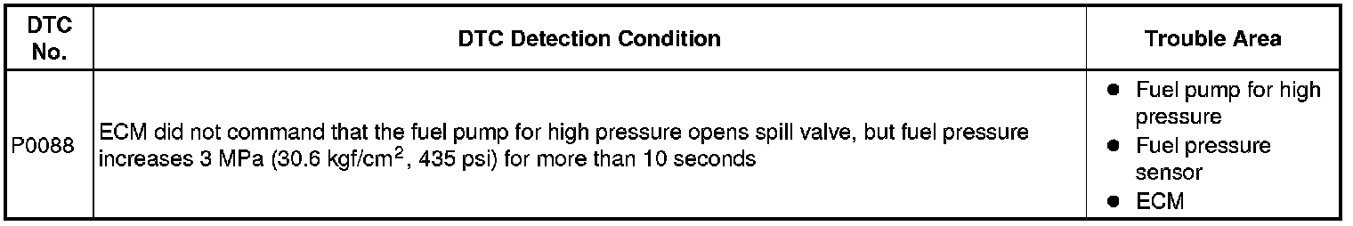 2GR-FSE ENGINE CONTROL SYSTEM: SFI SYSTEM: P0088: Fuel Rail / System Pressure - Too High