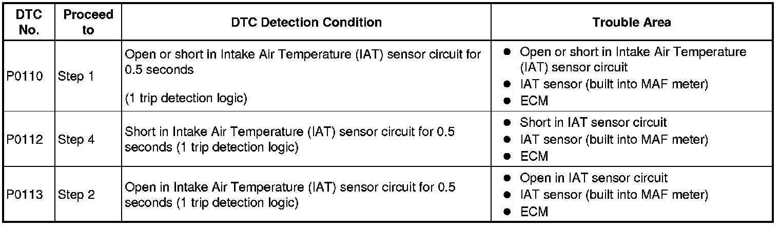 2GR-FSE ENGINE CONTROL SYSTEM: SFI SYSTEM: P0110: Intake Air Temperature Circuit Malfunction