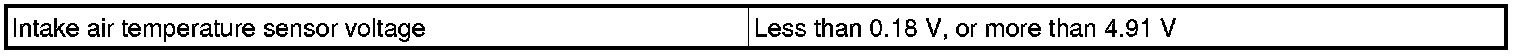 If the sensor output voltage is more than 4.91 V for 0.5 seconds or more, the ECM determines that there is an open in the IAT sensor circuit, and sets DTC P0113. Conversely, if the output voltage is less than 0.18 V for 0.5 seconds or more, the ECM determines that there is a short in the sensor circuit, and sets DTC P0112.