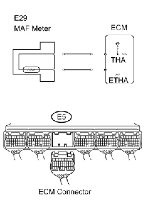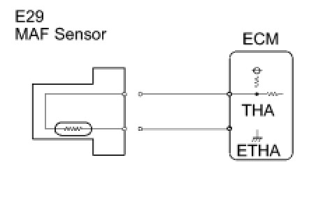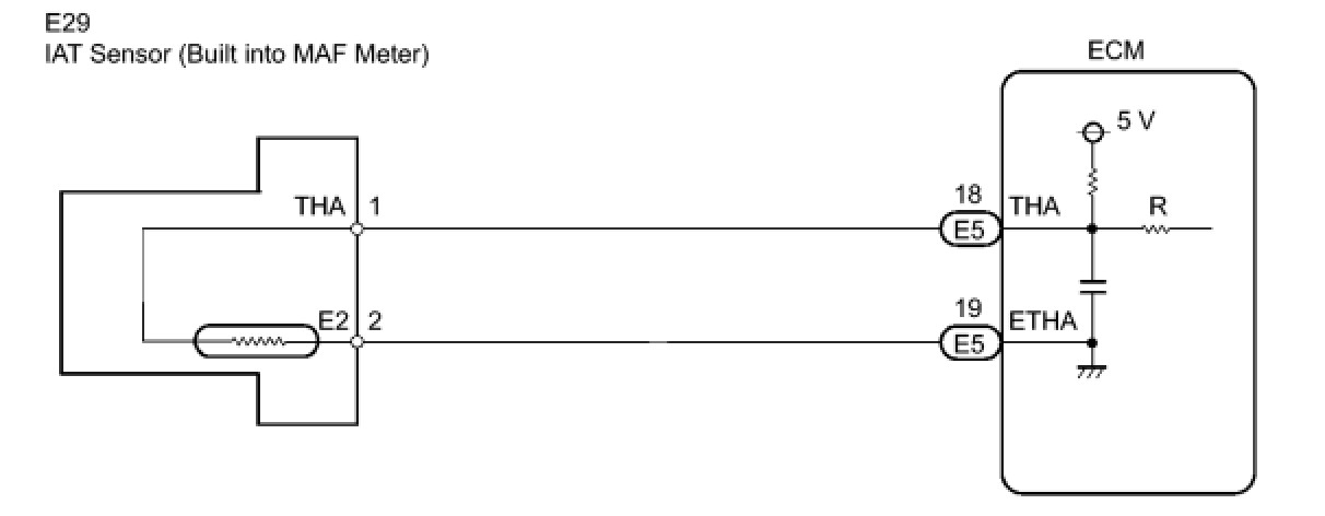 - Resistor R and the IAT sensor are connected in series. When the resistance value of the IAT sensor changes, according to changes in the IAT, the voltage at terminal THA also varies. Based on this signal, the ECM increases the fuel injection volume when the engine is cold to improve drive ability.