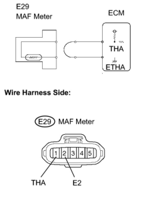 (c) Connect terminals THA and E2 of the MAF meter wire harness side connector.