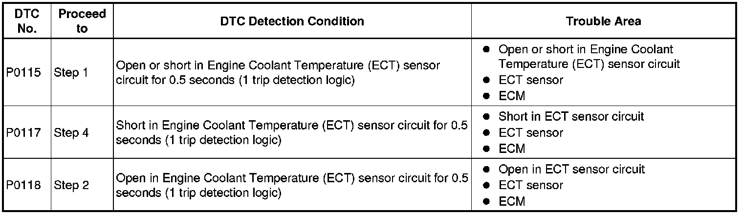 DTC P0115 - Engine Coolant Temperature Circuit Malfunction