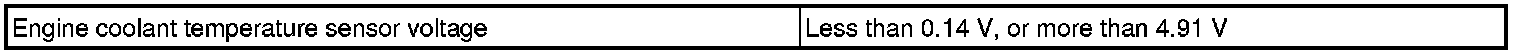If the sensor output voltage is more than 4.91 V for 0.5 seconds or more, the ECM determines that there is an open in the ECT sensor circuit, and sets DTC P0118. Conversely, if the voltage output is less than 0.14 V for 0.5 seconds or more, the ECM determines that there is a short in the sensor circuit, and sets DTC P0117.