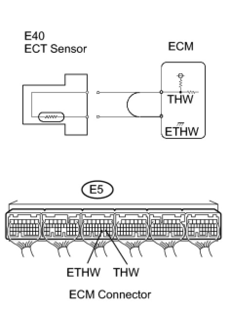 (c) Connect terminals THW and ETHW of the E5 ECM connector.
