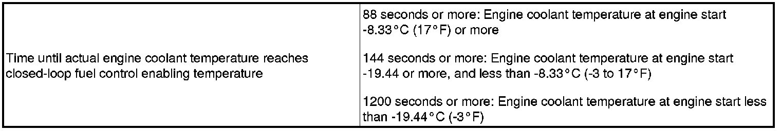 The ECT is 0°C (32°F) at engine start. After 5 minutes running time, the ECT sensor still indicates that the engine is not warm enough to begin closed-loop fuel (air-fuel ratio feedback) control. The ECM interprets this as a malfunction in the sensor or cooling system and sets the DTC.