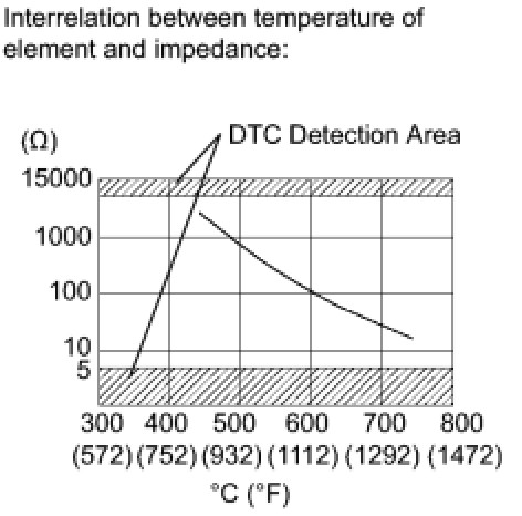 During normal air-fuel ratio feedback control, there are small variations in the exhaust gas oxygen concentration. In order to continuously monitor the slight variation of the HO2 sensor signal while the engine is running, the impedance* of the sensor is measured by the ECM. The ECM determines that there is a malfunction in the sensor when the measured impedance deviates from the standard range.