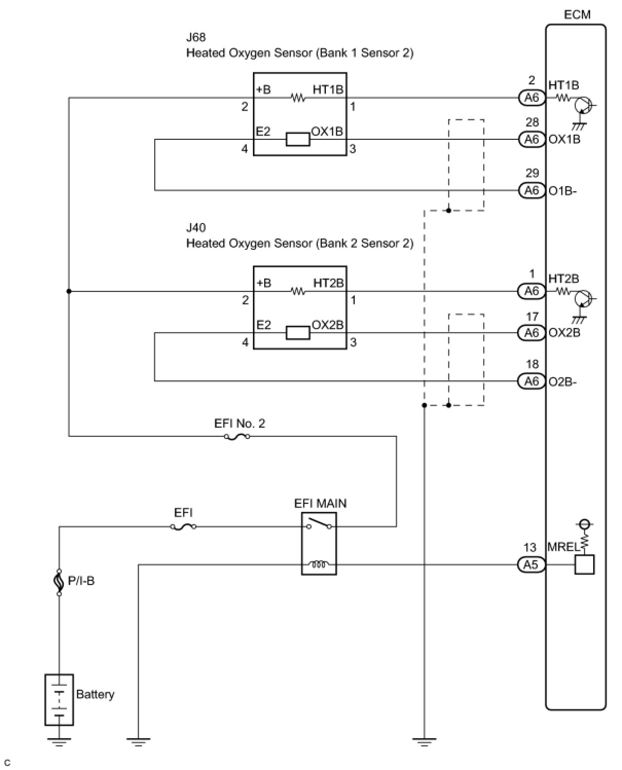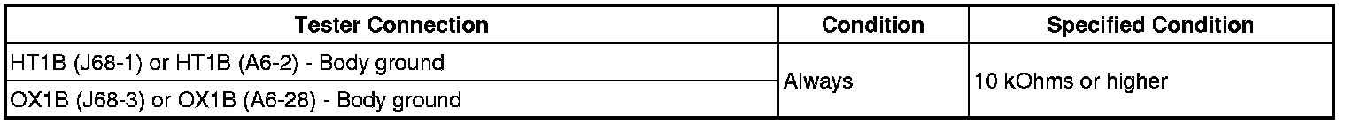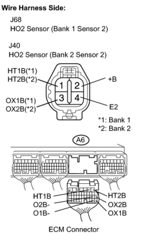 - If the OX1B or OX2B wire from the ECM connector is short-circuited to the +B wire, DTC P0136 or P0156 may be set.