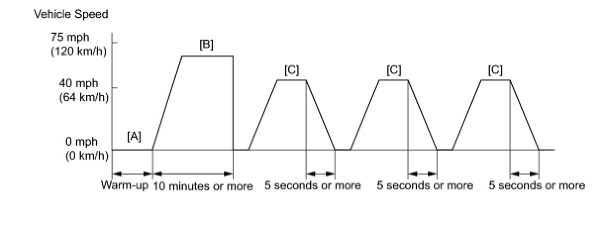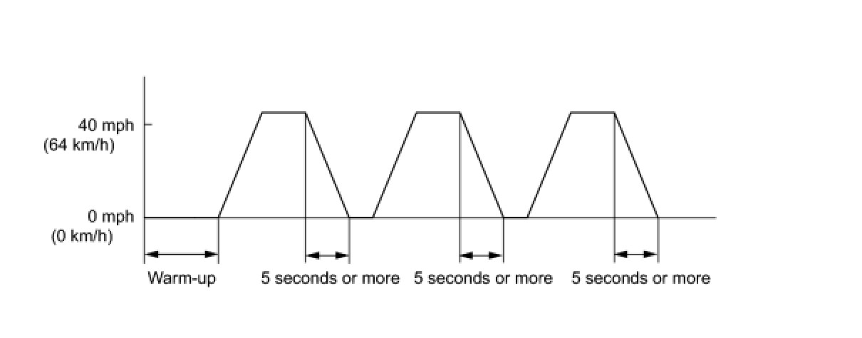 5 Drive the vehicle 40 mph (64 km/h) or more and decelerate the vehicle for 5 seconds or more. Perform this 3 times [C].
