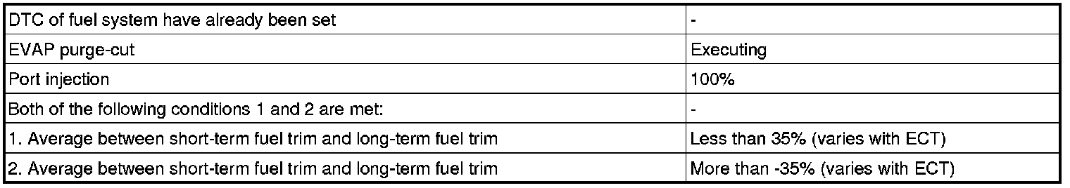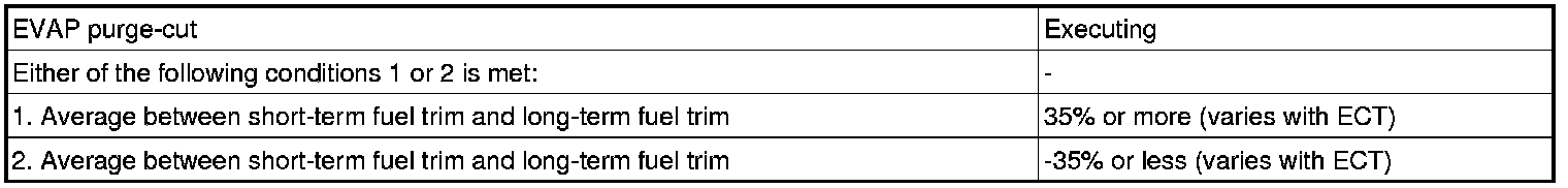 If the average fuel trim learning value is 35 % or more or -30 % or less, the ECM interprets this as a fuel system malfunction.