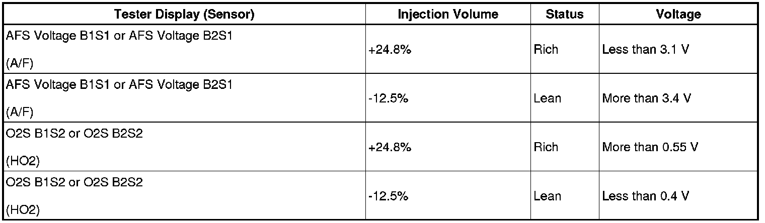 - The Control the Injection Volume for A/F Sensor operation lowers the fuel injection volume by 12.5 % or increases the injection volume by 24.8%.