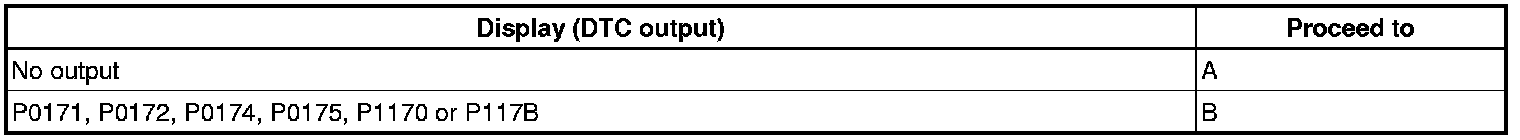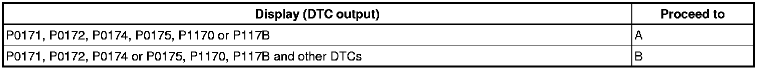 If any DTCs other than P0171, P0172, P0174, P0175, P1170, P117B are output, troubleshoot those DTCs first.