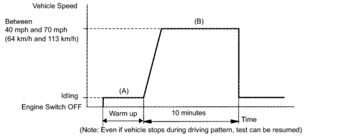 (f) Drive the vehicle at between 38 mph and 75 mph (61 km/h and 120 km/h) and at an engine speed of between 1400 rpm and 3200 rpm for 3 to 5 minutes. (Procedure "B")