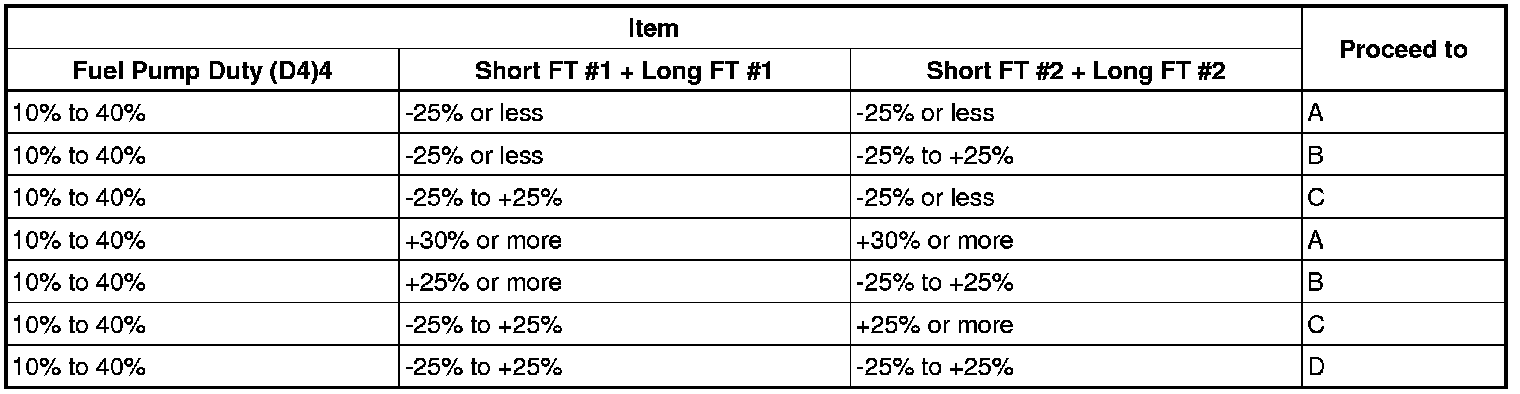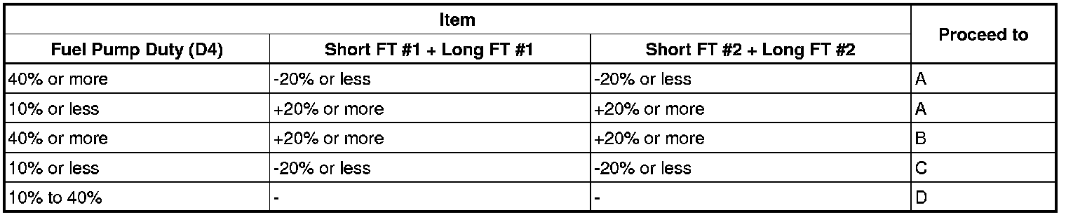 (f) Read the value Short FT #1, Long FT #1, Short FT #2, Long FT #2 and Fuel Pump Duty (D4).