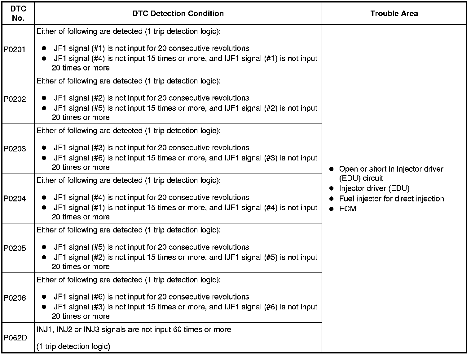 DTC P062D - No. 1 Fuel Injector Driver Circuit Performance