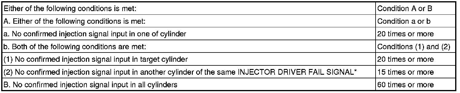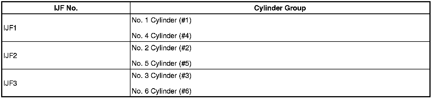 The ECM monitors the EDU at all times. If drivers or fuel injectors are malfunctioning, the EDU sends fuel injector operation condition signals (fail signals IJF1 to IJF3) to the ECM. When the ECM receives the signals, the ECM stops the fuel injection control of the appropriate cylinders, cuts voltage to the appropriate injector relay, and illuminates the MIL.