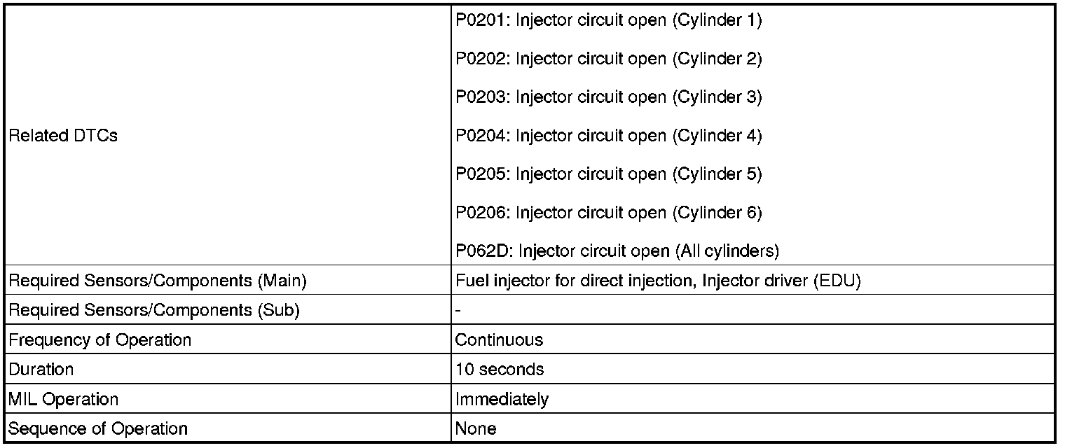 2GR-FSE ENGINE CONTROL SYSTEM: SFI SYSTEM: P0201: Injector Circuit / Open - (Cylinder 1)